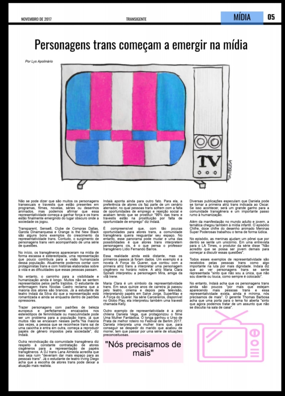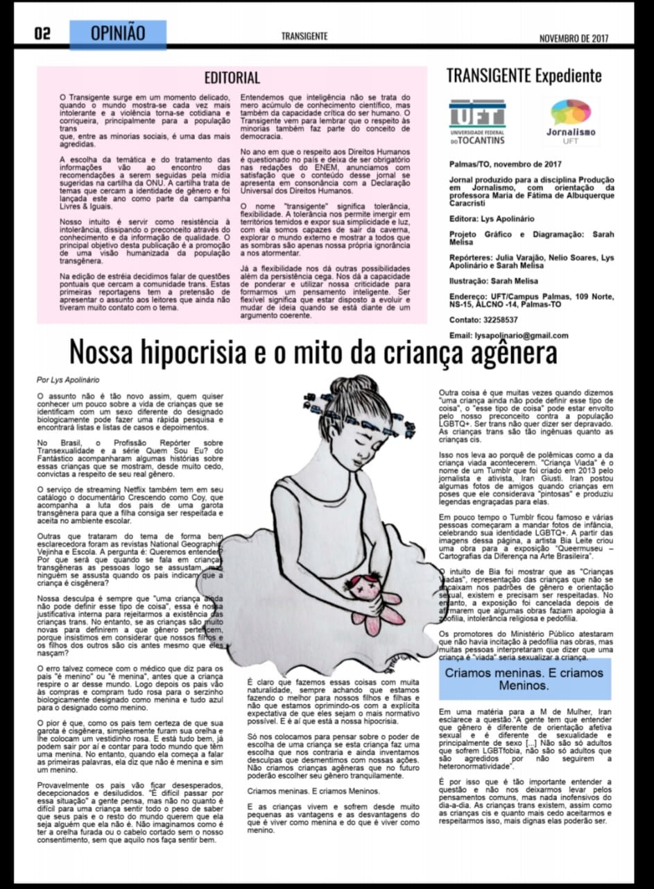 Em comemoração ao dia do orgulho LGBTI+, 28 de junho, publicamos o Jornal Transigente das alunas Lys Apolinário e Sarah Melissa. Elas explicam como devemos respeitar a todos independente da cor, sexo ou religião.