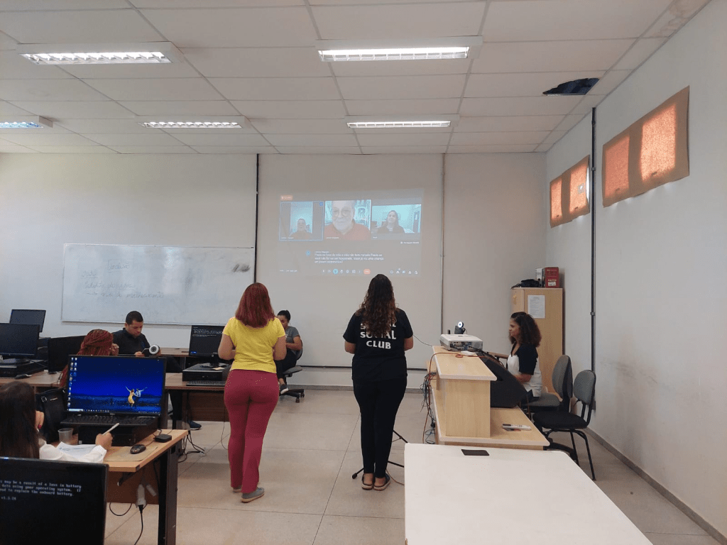 Foto de Arthur Girão, estudantes de jornalismo entrevistam o Conselheiro do Conselho da Pessoa Idosa, Leomar Brigagão