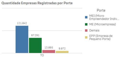 Apesar do crescimento constante, com abertura de novos empreendimentos, o número de empresas que fecham as portas no estado é grande quando levamos em conta o potencial de crescimento do estado. Atualmente, o Tocantins possui mais de 347.796 mil empresas registradas espalhadas por todos os seus 139 municípios, conforme mostra o gráfico abaixo.