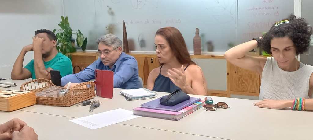 Foto do Calangopress: Ionaldo Carvalho (camisa azul), William (esquerda), Mônica Costa (direita) e Carolinne (na ponta direita)