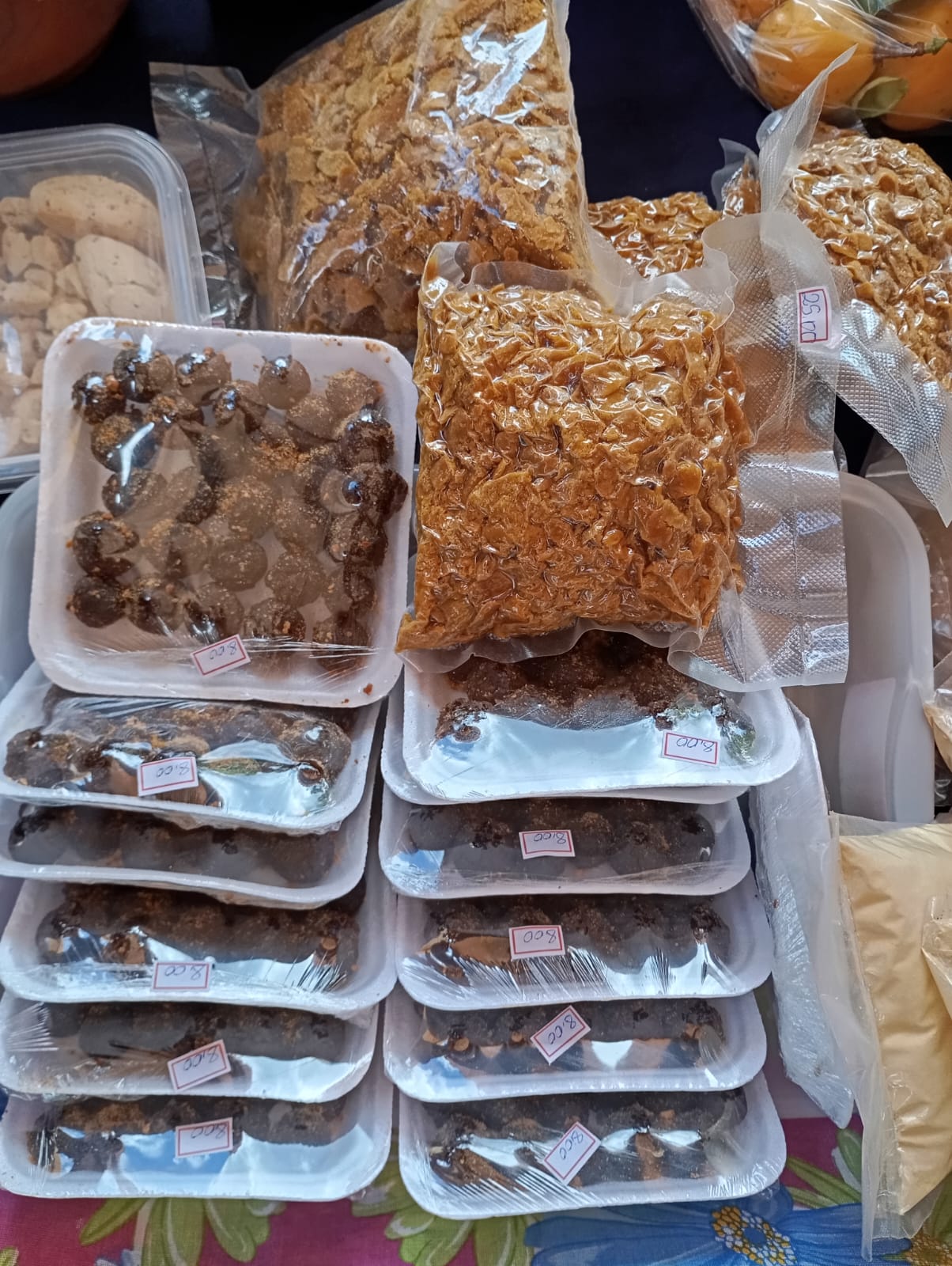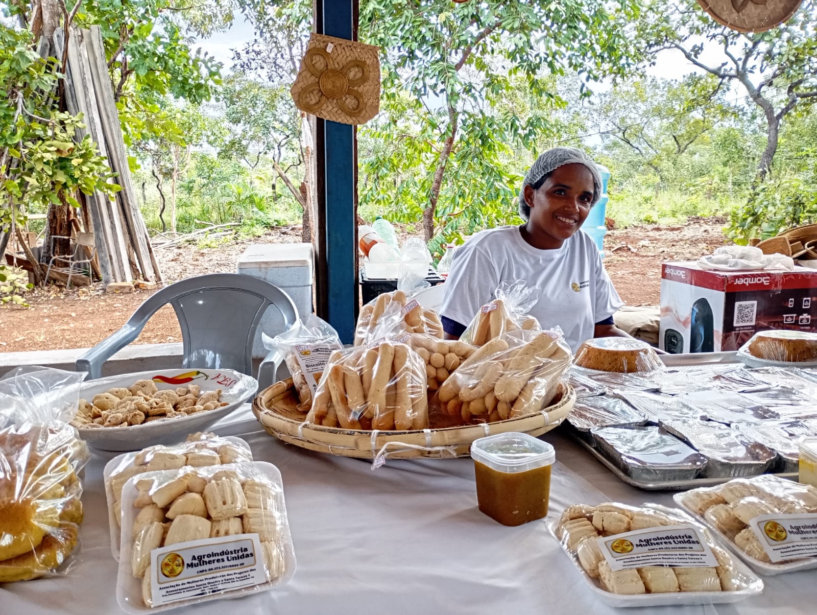 Fotos (1) Raquel Pinheiro, presidente da Associação Mulheres Unidas do Jalapão, (2) produtos tipicos do Cerrado, castanhas, pão de barú, (3) maracujá, (4) doces, biscoitos, (5)condimentos
