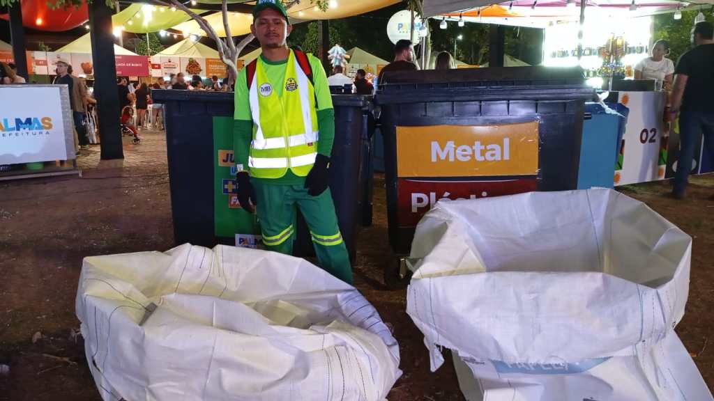 No Festival gastronômico o “Recicla Taquaruçu” já atua há 3 anos, realizando coleta seletivas com pessoas voluntárias, depois buscaram recursos para pagar os catadores e monitores, que são formados no próprio circo.